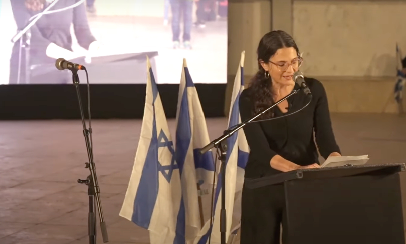 Rabbi Sharon Brous spoke at a pro-democracy rally while in Israel with NIF.